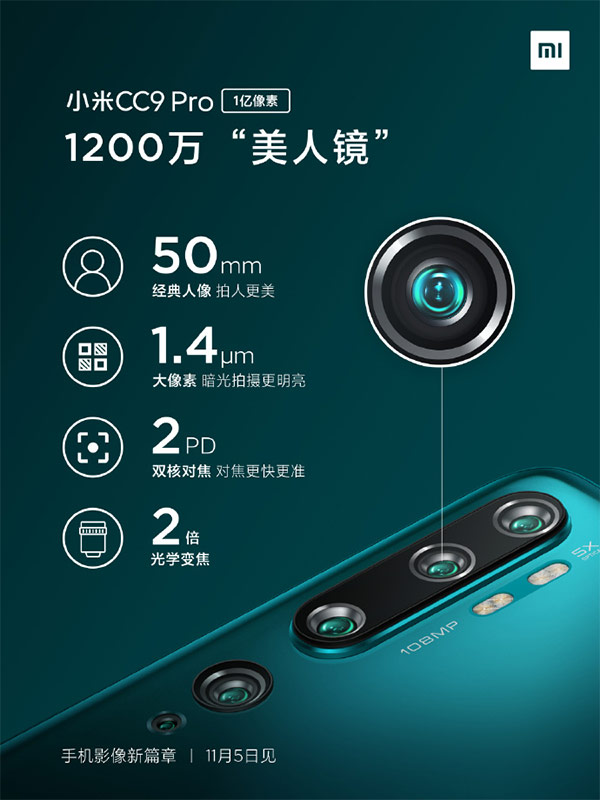 Xiaomi Mi CC9 Pro เผยทีเซอร์ยืนยันแบตใหญ่ 5260 mAh พร้อมชาร์จไว 30W และกล้องหลัง 5 ตัว คมชัด 108MP เตรียมเปิดตัวจริง 5 พ.ย. นี้