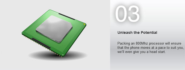 - ประมวลผลการทำงานด้วย Qualcomm MSM 7230 Processor ความเร็วในการประมวลผล 800 MHz