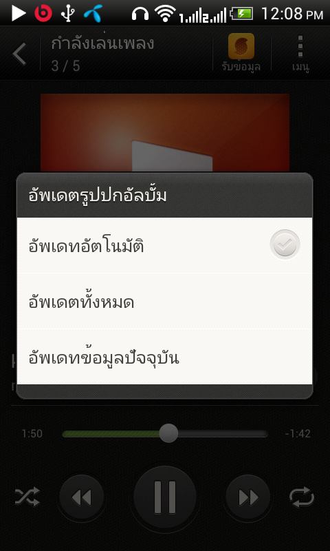 เมื่อกดเข้ามาในเมนูอัพเดทปกอัลบั้มจะสามารถเลือกให้อัพเดตอัตโนมัติ, อัพเดททั้งหมด และอัพเดทข้อมูลปัจจุบันได้