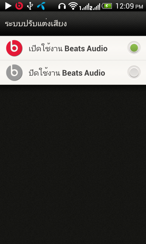 ถ้าเลือกที่เมนูปรับแต่งเสียงจะสามารถตั้งเสียงให้ใช้ระบบ Beats Audio ได้ แต่ต้องใช้กับหูฟังเท่านั้น