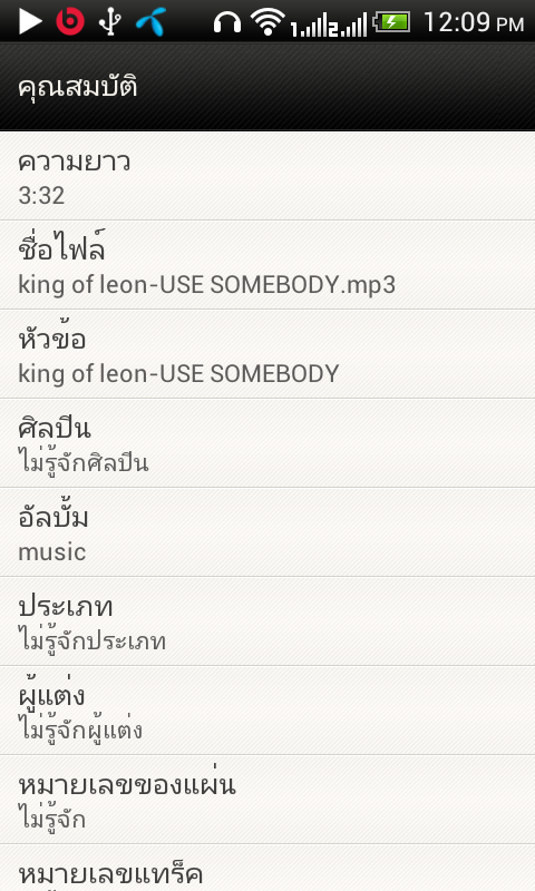 ยังสามารถดูคุณสมบัติของเพลงได้อีกด้วย