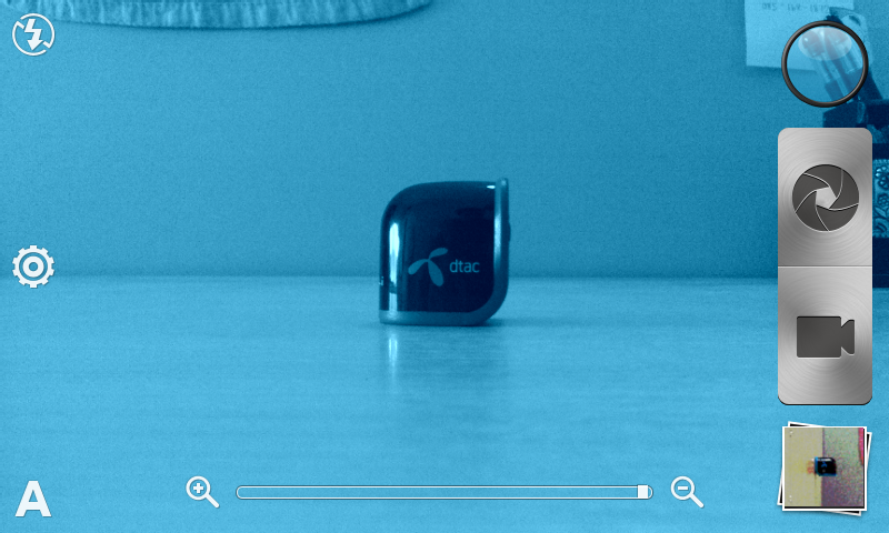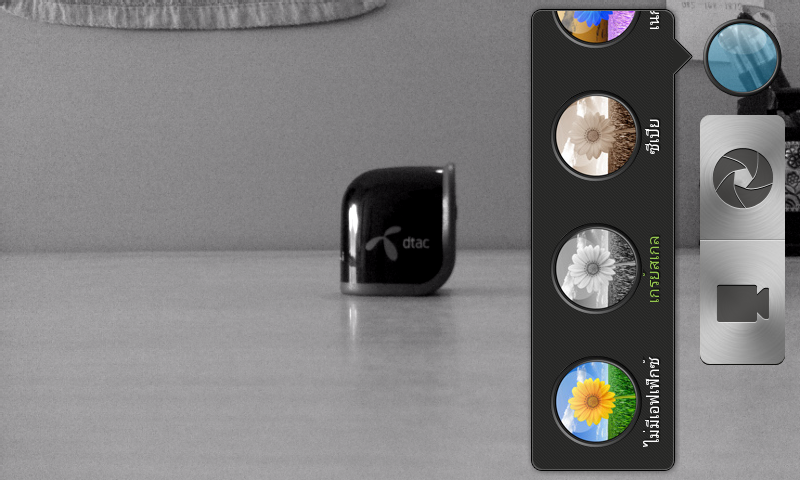 นอกจากนี้ HTC Desire V ยังมีฟังก์ชันสำหรับการถ่ายรูปด้วยเอฟเฟคแบบต่างๆ โดยการกดไปที่ไอคอนกลมๆ สีฟ้า