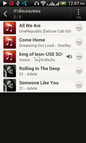 เมื่อเลือกที่เมนูคิวเพลง จะมีรายการเพลงต่างๆ และเพลงต่อไปนั้นคืออะไร หรือมีไอค่อนรูปลำโพงบอกว่าเรากำลังฟังเพลงไหนอยู่
