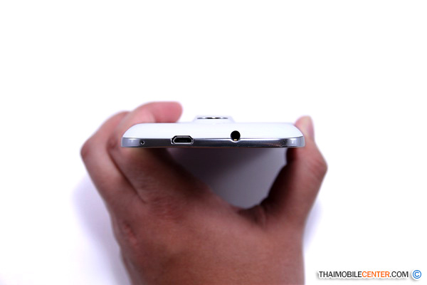 ด้านบน : จะมีช่องสำหรับเสียบหูฟังขนาด 3.5 มิลลิเมตร, ช่องสำหรับเสียบสายชาร์จแบบ microUSB และช่องต่อสายหูฟังมาตรฐานขนาด 3.5 มิลลิเมตร
