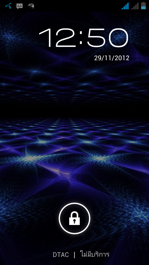 โดยหน้าจอ Lockscreen จะมีการแจ้งเตือนจ่างๆ เช่น SMS หรือ สถานะการใช้งาน WiFi ก็จะแสดงให้เห็นดังรูป