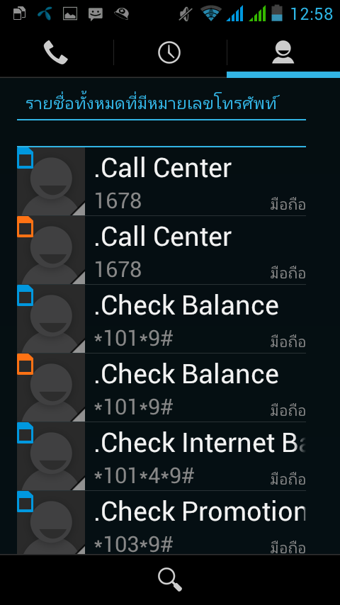 และถ้าเลือกที่ไอค่อนรูปบุคคลจะเป็นรายชื่อเบอร์โทรศัพท์