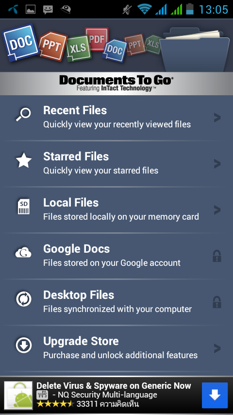 นอกจากนี้ i-mobile IQ5 ยังมาพร้อมกับแอพพลิเคชั่น Document To Go สำหรับเปิดไฟล์เอกสารต่างๆ