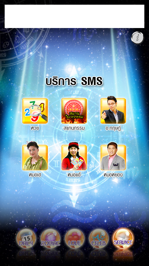 สุดท้ายจะเป็นบริการทำนายผ่าน SMS จากท่านอาจารย์ชื่อดังต่างๆ โดยจะเสียค่าบริการครั้งละ 3 บาท