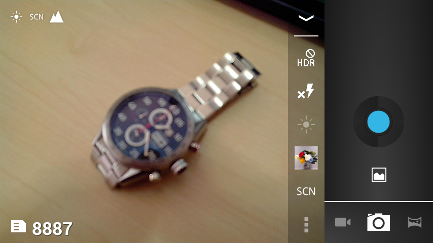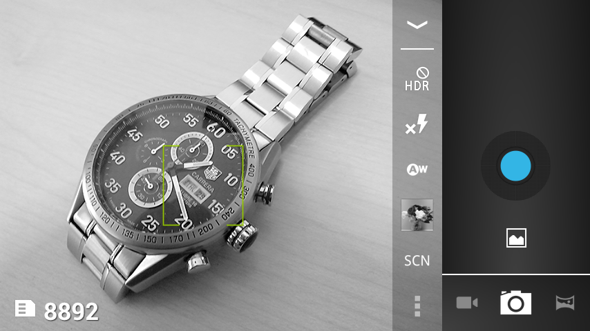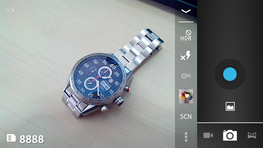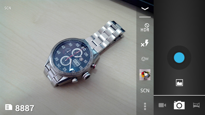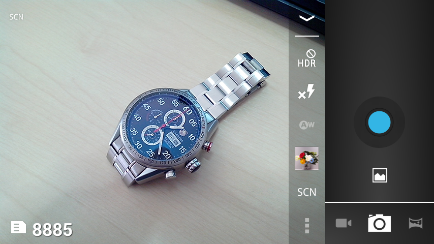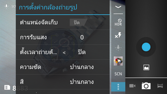 โดยสามารถตั้งค่าการถ่ายรูปได้ เช่น การเปิด-ปิด โหมด HDR, การเปิด-ปิดไฟแฟลช และการตั้งค่าสมดุลสีขาว (White Balance)