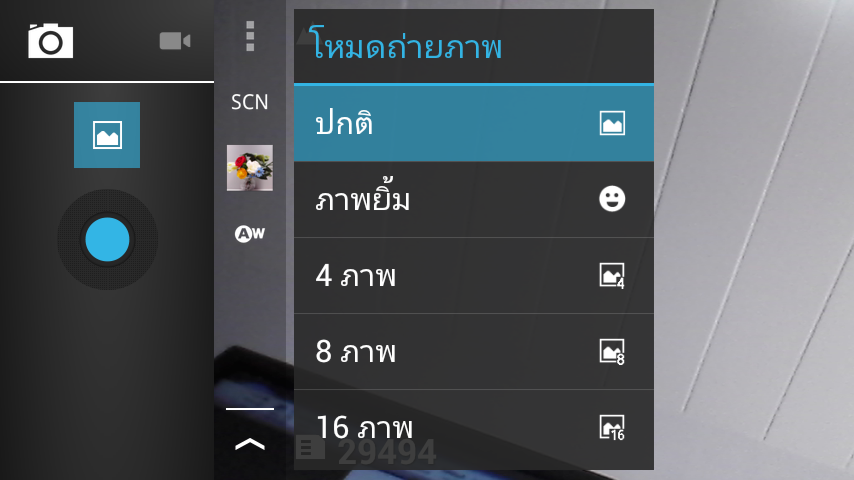 และยังสามารถเลือกโหมดการถ่ายภาพได้เดียวกัน