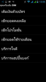 สามารถ เติมเงิน, ตรวจสอบยอดเงินคงเหลือ, ตรวตสอบโปรโมชั่น, ตรวจสอบยอดรายเดือน ผ่านทางแอพพลิเคชั่น ชุดเครื่องมือ SIM บน i-mobile IQ 5 ได้อีกด้วย