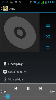 เมื่อเปิดเพลงจะแอพพลิเคชั่นจะมีหน้าตา ดังรูป