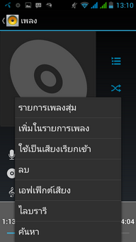 นอกจากนี้ ยังสามารถตั้งค่าต่างๆ ได้เช่น รายการเพลงสุ่ม, สลับทั้งหมด, เอฟเฟคเสียง และค้นหา