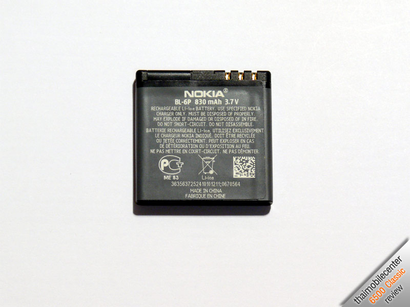 แบตเตอรี่ของ 6500 Classic นั้นเป็นแบตเตอรี่แบบ Lithium Ion