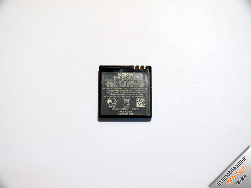 รุ่น BL-6P ขนาดความจุ 850 mAh ซึ่งดูจากขนาดความจุเพียงอย่างเดียวก็เหมือนจะน้อยไปสักหน่อย