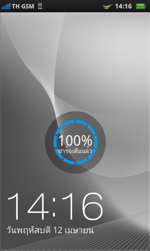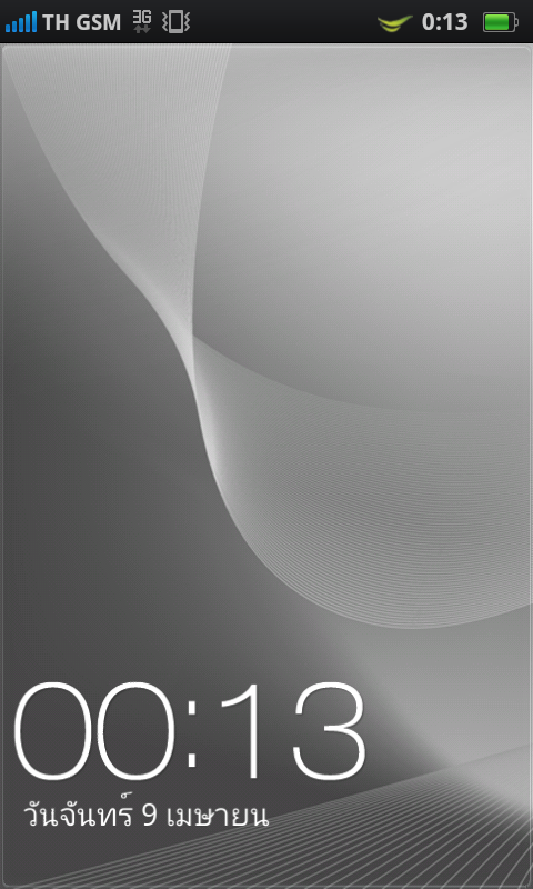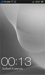 หน้าจอ Lockscreen ที่มีการแสดงข้อมูลพื้นฐานต่างๆ และหากมีสถานะการทำงานอื่นๆ เช่นการชาร์จแบตเตอรี่ ก็จะมีไอคอนแสดงสถานะให้ทราบเช่นกัน