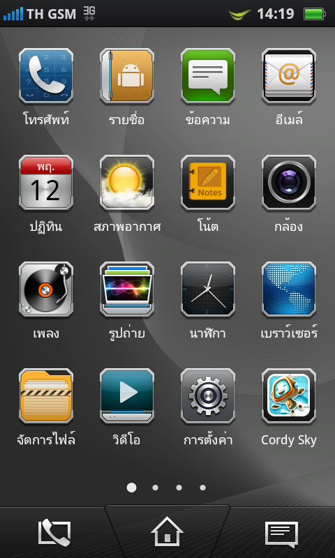 ที่แถบด้านบนของหน้าจอ จะมีการแสดงข้อมูลพื้นฐานต่างๆ ตั้งแต่ระดับสัญญาณ, ชื่อของเครือข่าย, รูปแบบของการเชื่อมต่ออินเทอร์เน็ต, สัญลักษณ์ของเครือข่าย, เวลา และระดับพลังงานแบตเตอรี่