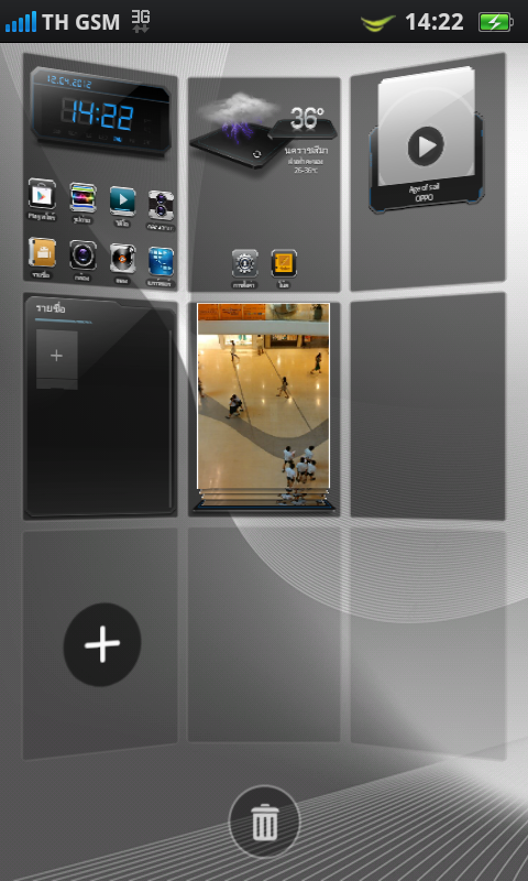ในหน้า Home Screen หากเราเอานิ้วแตะค้างเอาไว้บริเวณพื้นที่ๆ ว่างอยู่ ก็จะแสดงให้เห็น Interface สำหรับการเพิ่ม วิดเจ็ต, ปุ่มลัด, วอลเปเปอร์ และโฟลเดอร์