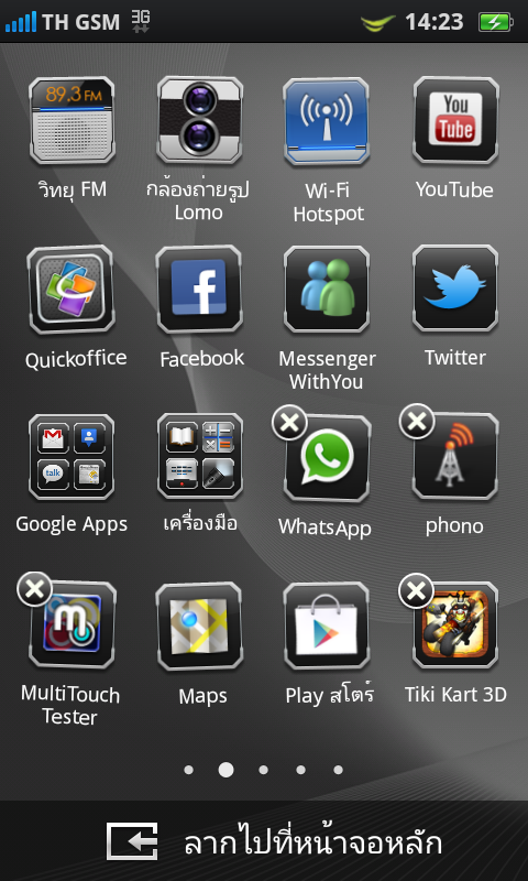 ในหน้าเมนูหลัก เราสามารถย้ายตำแหน่งของไอคอนต่างๆ ได้อย่างอิสระ ทั้งในหน้าเดียวกัน หรือย้ายข้ามหน้า รวมไปถึงการนำไปวางไว้ที่หน้าจอ Home Screen และการลบแอพพลิเคชั่นที่ไม่ต้องการใช้งาน