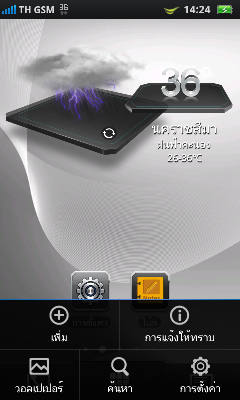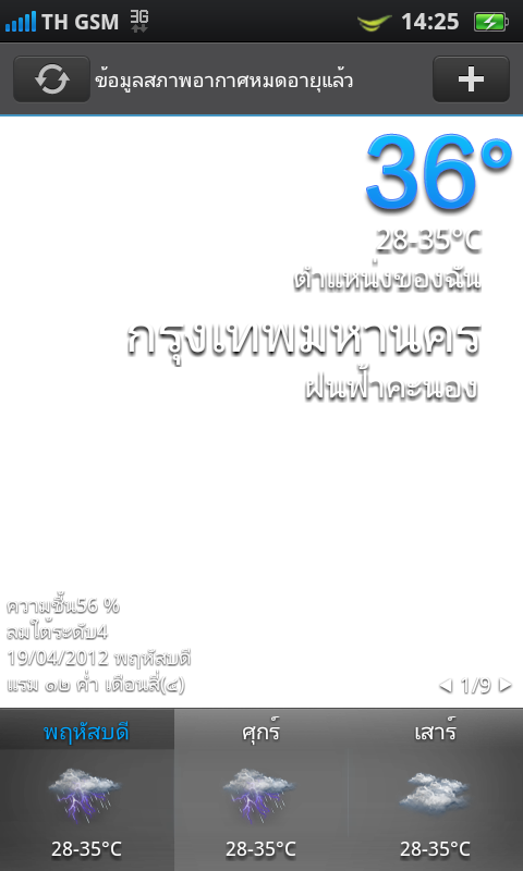 ฟังก์ชันการพยากรณ์อากาศจะมีการแสดงผลภาพเคลื่อนไหวที่สวยงาม และสามารถเพิ่มจังหวัด หรือเมืองต่างๆ ได้ตามใจชอบ