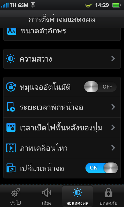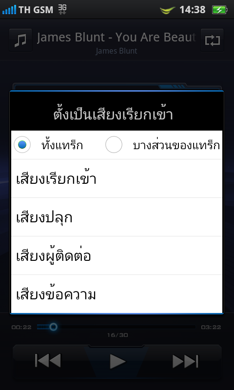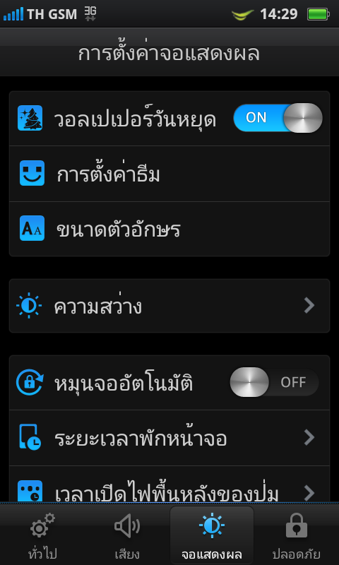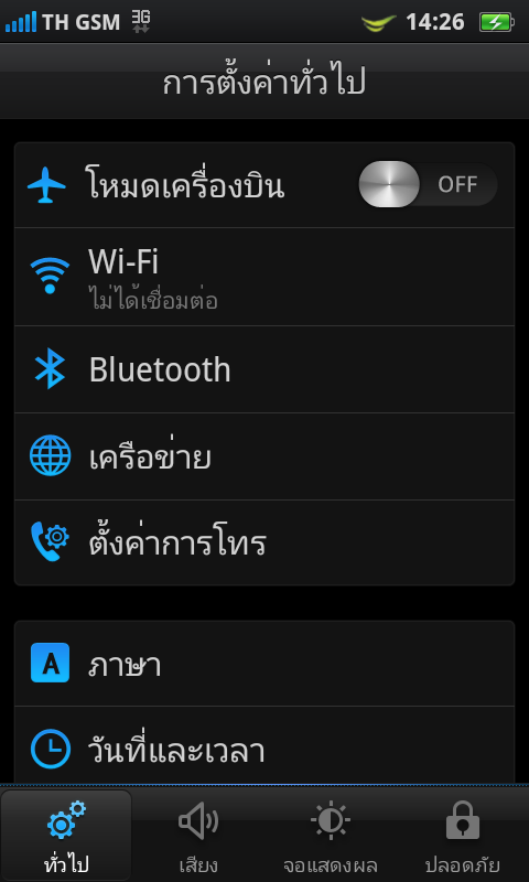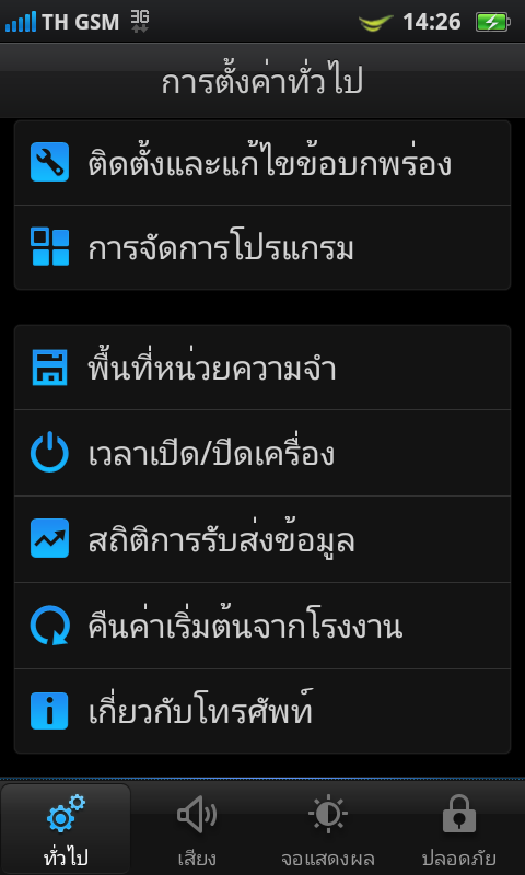 การตั้งค่าเสียง ทั้งเสียงเรียกเข้า, เสียงเตือน, เสียงปุ่มกด, เสียงเพลง และเสียงอื่นๆ