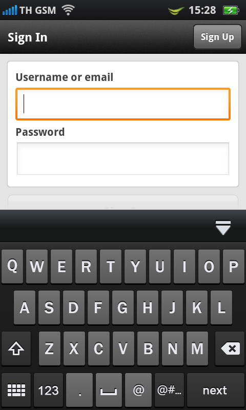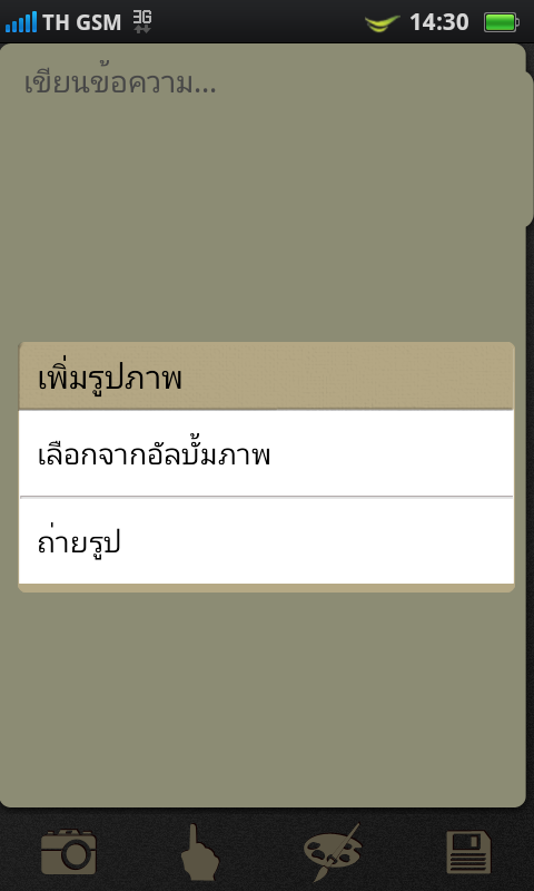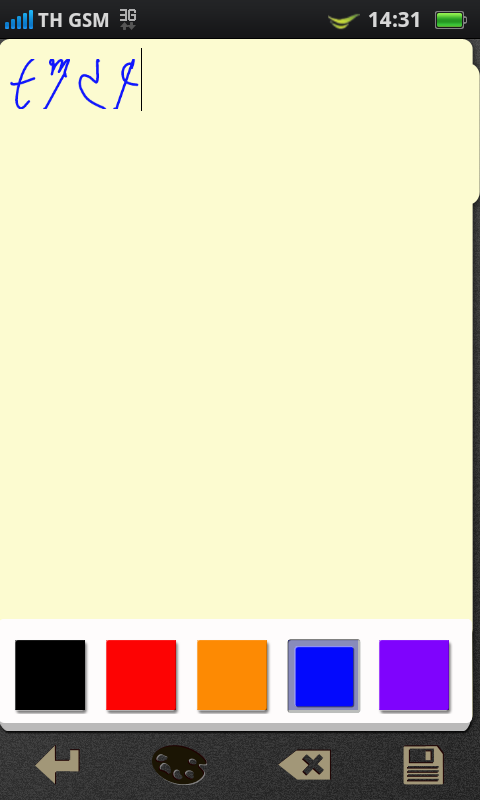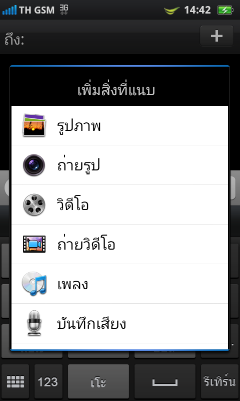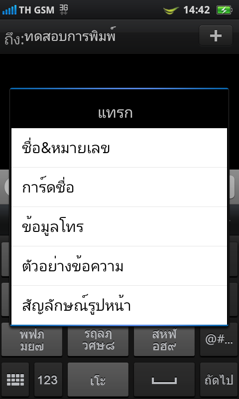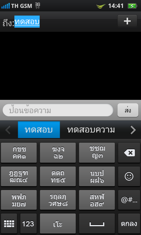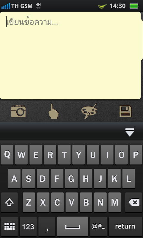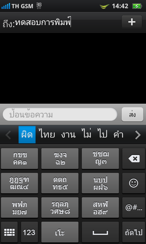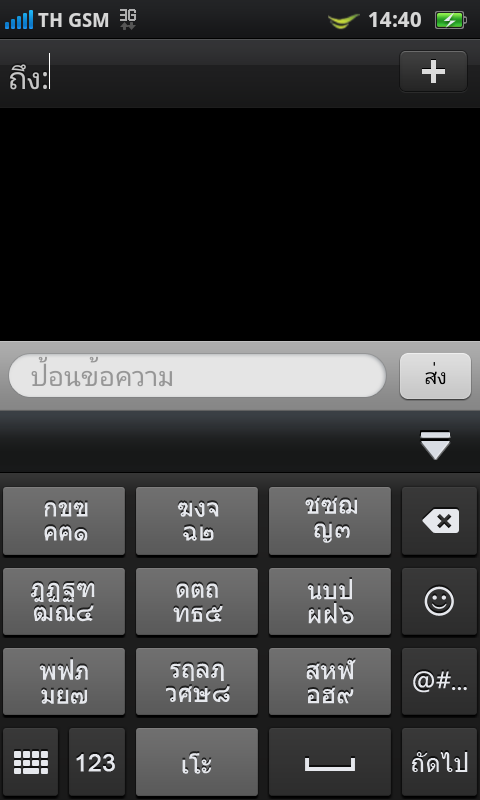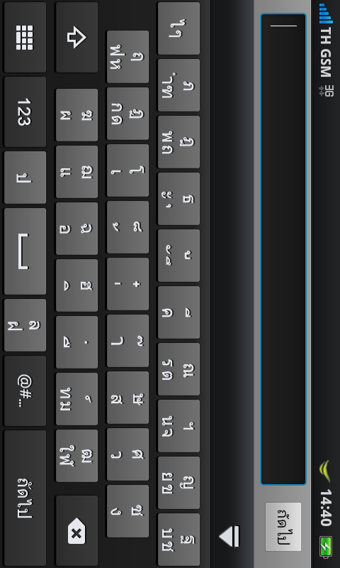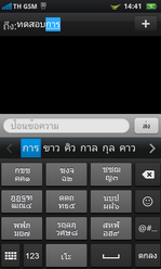 แต่หากวางเครื่องในแนวนอน การพิมพ์ข้อความภาษาไทย ก็จะมีคีย์บอร์ดแบบ QWERTY ให้ใช้งานเช่นเดียวกัน