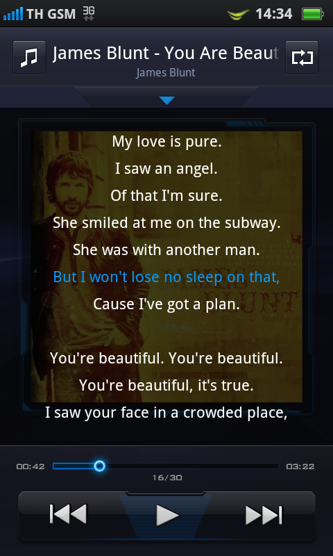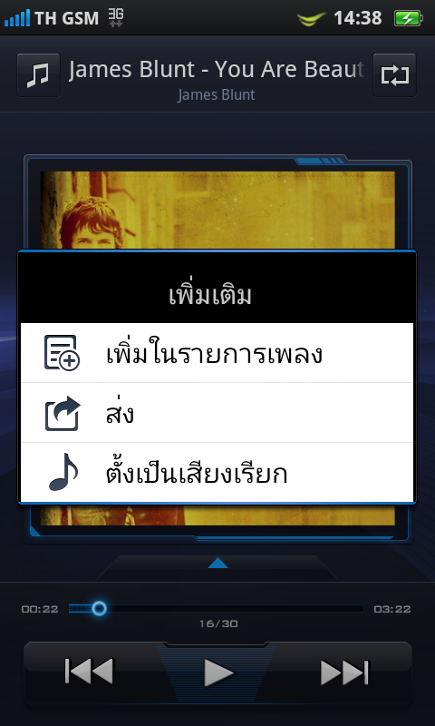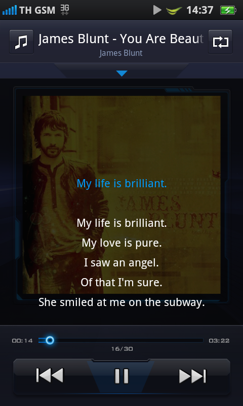 วิดเจ็ตเครื่องเล่นเพลงถือว่ามีความสวยงามน่าใช้งาน และเมื่อกดเล่นเพลง วิดเจ็ตก็จะขยายออกมาทางด้านข้างดังที่เห็น