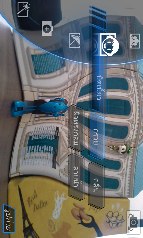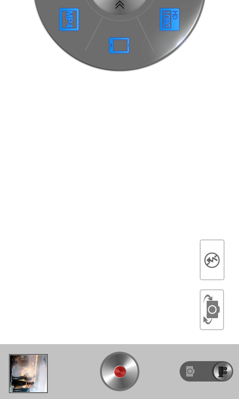 User Interface ของการถ่ายภาพวิดีโอด้วยกล้องตัวหลักที่ด้านหลังของตัวเครื่อง ซึ่งรองรับความละเอียดสูงสุดที่ระดับ Full HD 1080p และเลือกรูปแบบไฟล์ได้สองรูปแบบคือ 3GP และ MP4