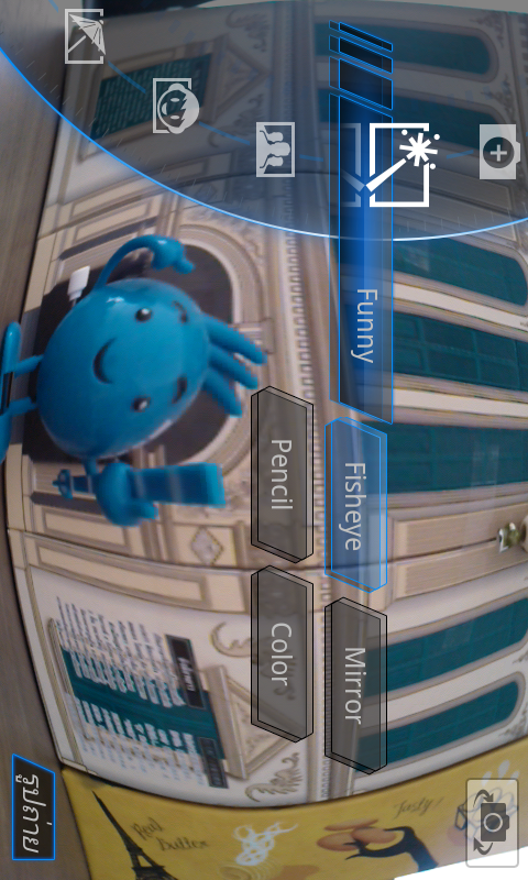 โหมดการถ่ายภาพแบบ Funny จะประกอบไปด้วยเอฟเฟคแบบ Fisheye, Mirror, Pencil และ Color