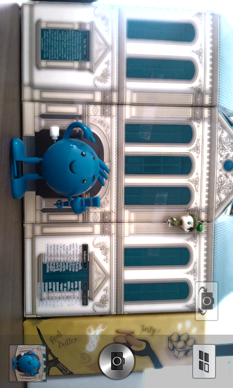 - ไม่มีปุ่มกล้องดิจิตอลโดยเฉพาะที่ด้านข้างของตัวเครื่อง ต้องกดชัตเตอร์บนหน้าจอแสดงผลเท่านั้น