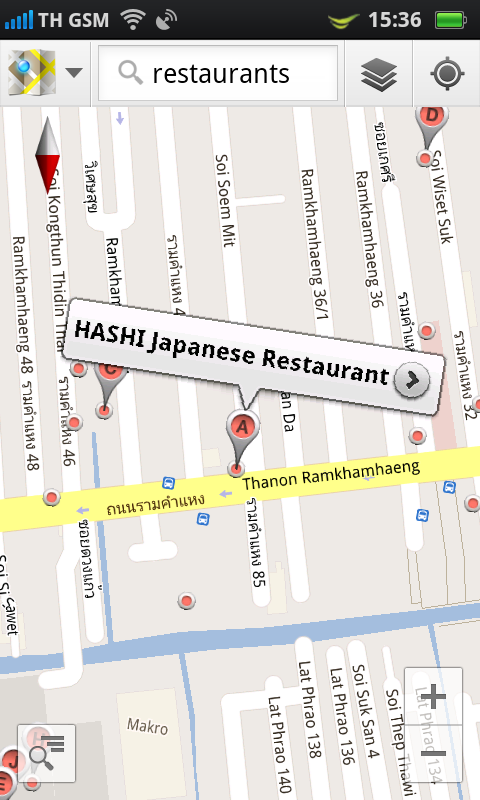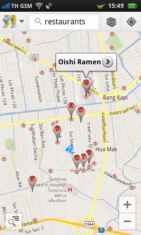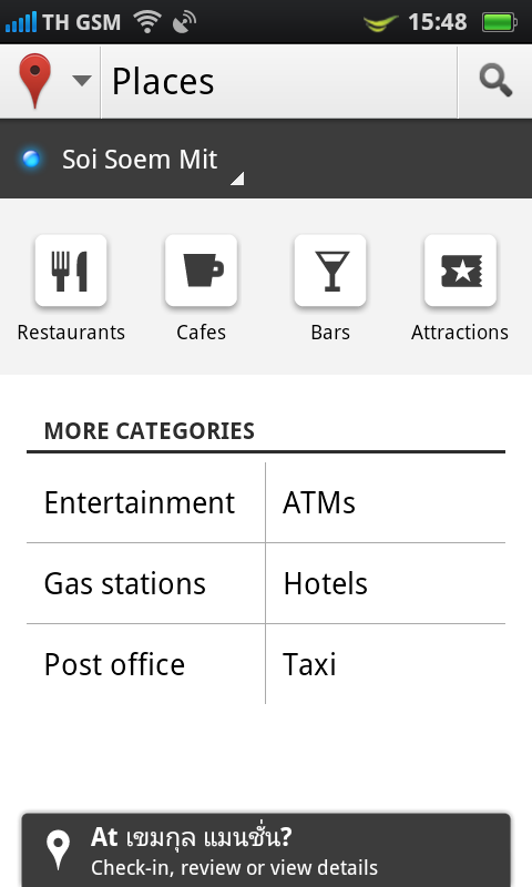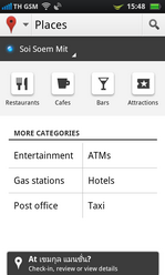 สามารถค้นหาสถานที่ตามหมวดหมู่ต่างๆ เช่นหากเลือกไปที่ภัตตาคาร หรือร้านอาหาร ระบบก็แสดงข้อมูลของภัตตาคาร หรือร้านอาหาร ที่ใกล้เคียงกับจุดที่เราอยู่ให้โดยอัตโนมัติ