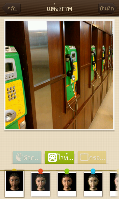 ตัวอย่างภาพถ่ายในโหมด Funny (Fisheye, Mirror, Pencil, Color)