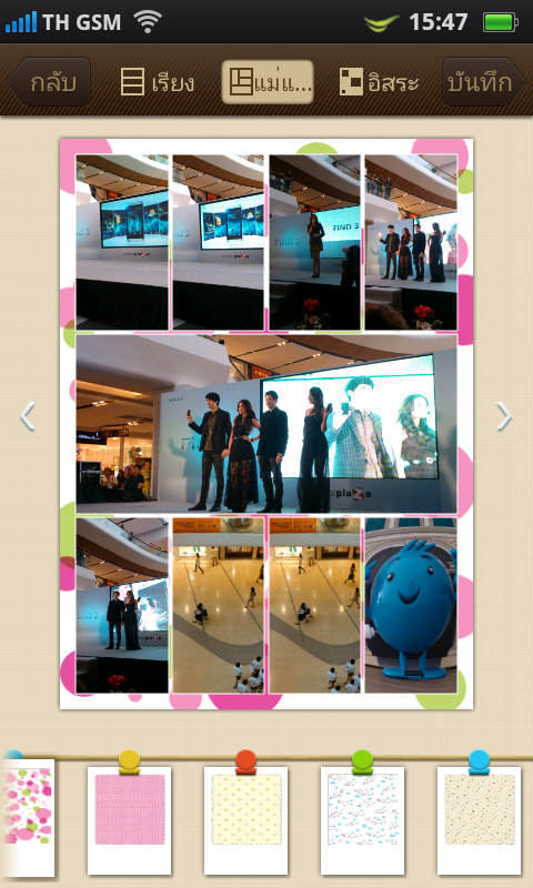 มีเครื่องมือสำหรับการนำรูปภาพหลายๆ รูปมาเรียงเข้าด้วยกันในรูปแบบต่างๆ ด้วย Template มาตรฐานที่มีมาให้