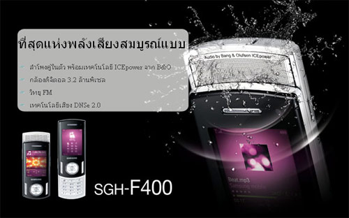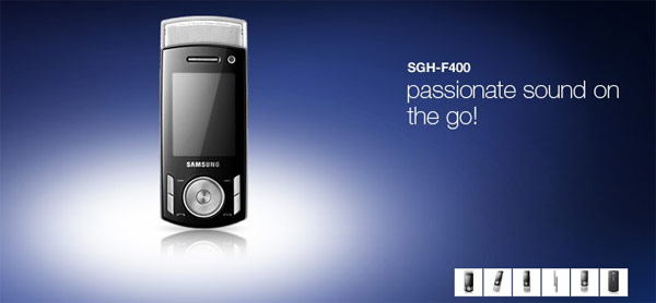 จาก Samsung ในชื่อรุ่นว่า F400 ซึ่งโปรโมทความสามารถที่โดดเด่นมากที่สุดในเรื่องของการฟังเพลง