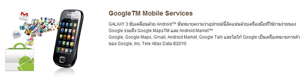 ท่านสามารถตรวจสอบคุณสมบัติแบบสรุป (Specification) ของ Samsung Galaxy 3 i5801 ได้โดยการคลิ๊กที่ Link ด้านล่างนี้