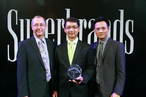 นายพรรัตน์ เจนจรัสสกุล ผู้ช่วยกรรมการผู้อำนวยการ ส่วนงานการสื่อสารการตลาด บมจ.แอดวานซ์ อินโฟร์ เซอร์วิส หรือเอไอเอส (กลาง) รับมอบรางวัล Superbrand 2011 จาก มร.ไมค์ อิงลิช ประธานบริหารและผู้อำนวยการซุปเปอร์แบรนด์ ประเทศอังกฤษ (ซ้าย ) ในโอกาสที่เอไอเอสได้รับความไว้วางใจ และยอมรับจากผู้บริโภคให้เป็นสุดยอดแบรนด์ของประเทศไทย ซึ่งเป็นบริษัทผู้ให้บริการโทรศัพท์เคลื่อนที่รายเดียวที่ได้รับรางวัลนี้ โดยมีนายปรีชา แก่นพรหม ผู้อำนวยการซุปเปอร์แบรนด์ประเทศไทย (ขวา) เข้าร่วมงาน ณ ศูนย์การค้าเซ็นทรัลเวิลด์
