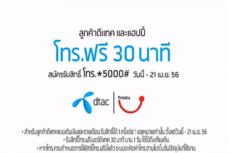 ดีแทคใจดี แจกลูกค้าฟรี 30 นาที