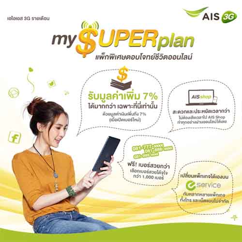 ÇÔ¸Õ¡ÒÃÊÁѤáç§èÒÂæàÅ á¤èà»Ô´àºÍÃìãËÁè http://www.ais.co.th...spx?language=th ¾ÃéÍÁàÅ×Í¡á¾ç¡à¡¨ËÅÑ¡ (¾ÔàÈÉ à¾ÔèÁÁÙŤèÒà§Ô¹ãËéÍÕ¡7%) >>àÅ×Í¡á¾ç¡àÊÃÔÁ ÊÒÁÒö¨Ó¡Ñ´¤èÒâ·Ã ¤èÒà¹çµä´é´éǵÑÇàͧ >>àÅ×Í¡àºÍÃ줹¾ÔàÈÉ â·Ã¶Ù¡µÒÁªèǧàÇÅÒ sms,mms >>àÅ×Í¡àºÍÃìä´éÁÒ¡¡ÇèҾѹàºÍÃì á¶Áà»ç¹àºÍÃìÊÇ àºÍÃìàÃÕ§ àºÍÃìÁ§¤Å·Ñé§¹Ñé¹ ¿ÃÕ!! >>ÃѺá¨é§ºÔÅ·Ò§Email >>¨èÒ¤èÒºÃÔ¡Òà ¸ØÃ¡ÃÃÁµèÒ§æ·Ò§Í͹äŹì à»ç¹á¾ç¡à¡¨ÃÒÂà´×͹ẺÍ͹äÅ¹ì ·ÕèãË館³¨èÒ¹éÍ áµèä´éÁÒ¡¡ÇèÒ á¶Á¡Ó˹´á¾ç¡à¡¨¢Í§µÑÇàͧä´é§èÒÂæ à¾ÃÒзءÍÂèÒ§ÍÂÙ躹ÍÔ¹àµÍÃìà¹çµËÁ´áÅéÇ äÁèµéͧàÊÕÂàÇÅÒà´Ô¹·Ò§ä»ÈÙ¹ÂìàÅ ^^