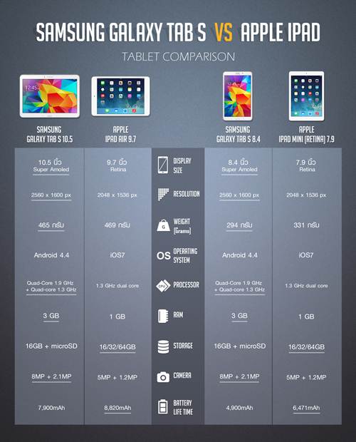 | ถ้าเปรียบเทียบระหว่าง ipad กับ Galaxy Tab S ต่างกันมากหรือป่าว