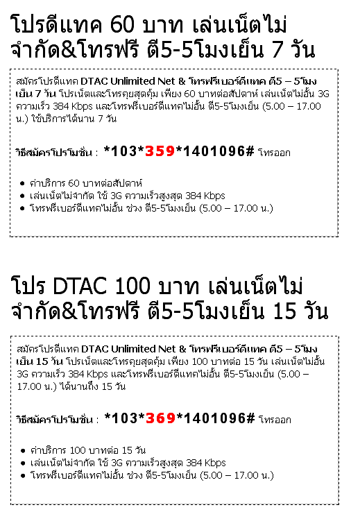 รายละเอียด http://www.prothaidd.com/dtac-60-baht-7days/
