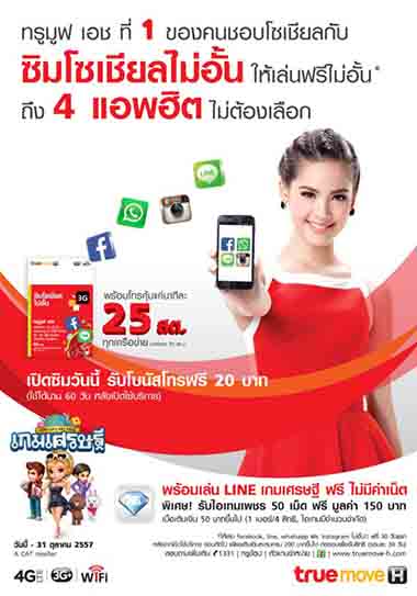 ก่อนอื่นต้องเปิดซิม Social Unlimited ของทรู คือเติมเงิน 50 บาท กด *978*1# แล้วโทรออก แล้วจะให้รหัสมากรอก ได้ 1 เบอร์ / 1 สิทธิ์จ้า นอกจากนี้ยังได้เล่นพวก Facebook, Line, Instagram และ whatapp ฟรีไม่อั้นด้วย ดูเพิ่มเติมได้ที่เว็บนี้จ้า http://truemoveh.truecorp.co.th/3g/sim- ... entry/3189