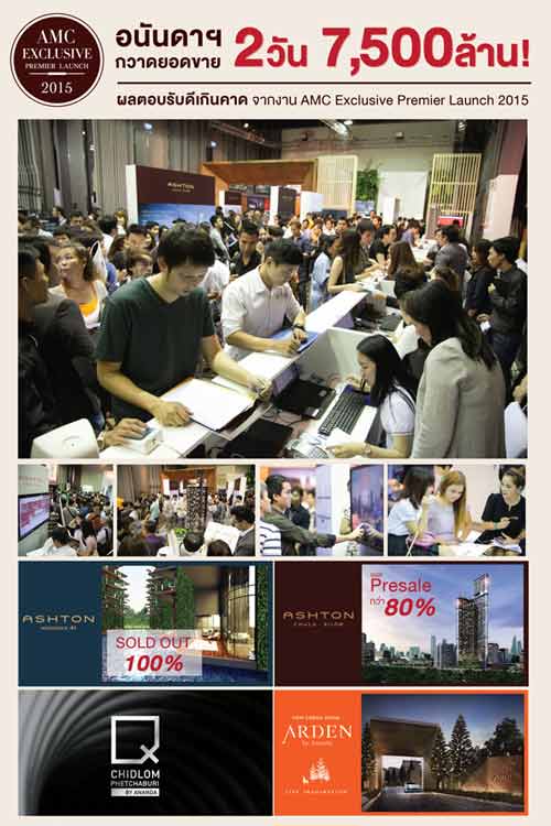 ºÃÔÉÑ· ͹ѹ´Ò ´ÕàÇÅÅÍ»àÁé¹·ì ¨Ó¡Ñ´ (ÁËÒª¹) ¨Ñ´§Ò¹ AMC Exclusive premier launch 2015 Ãͺ¾ÔàÈÉ à¾Õ§ 2 Çѹ ¨Ñ´¢Öé¹àÁ×èÍÇѹ·Õè 21-22 ÁÕ¹Ò¤Á 2558 ³ âçáÃÁâ«¿Ôà·Å â«Åì ầ¤ì¤Í¡ ·Õè¼èÒ¹ÁÒ à»Ô´âÍ¡ÒÊãËéÅÙ¡¤éÒà¡èÒ ËÃ×Í Ananda member Club (AMC) áÅÐÅÙ¡¤éÒ·ÑèÇä»·Õèŧ·ÐàºÕ¹ ¼èÒ¹·Ò§ www.ananda.co.th ÁÕÊÔ·¸Ôìä´éàÅ×Í¡¨Ñº¨Í§Ëéͧ¡è͹ã¤Ã ¡Ñº 2 â¤Ã§¡ÒÃãËÁèÅèÒÊØ´ ä´éá¡è â¤Ã§¡Òà áͪµÑ¹ àÃÊ«Ôà´¹«ì 41 áÅÐ áͪµÑ¹ ¨ØÌÒ-ÊÕÅÁ ·ÕèÁͺ¢éÍàʹ;ÔàÈÉ੾ÒÐÀÒÂã¹§Ò¹à·èÒ¹Ñé¹ â´Â·Ñé§ 2 â¤Ã§¡ÒÃä´éÃѺ¡ÒõͺÃѺÍÂèÒ§´ÕÁÒ¡ ÊÒÁÒöÊÃéÒ§ÂÍ´¢Ò¨ҡâ¤Ã§¡Òä͹â´ÁÔà¹ÕÂÁ 2 â¤Ã§¡ÒÃãËÁè ¤Ô´à»ç¹ÁÙŤèÒâ¤Ã§¡ÒÃÃÇÁ¡ÇèÒ 7,500 ÅéÒ¹ºÒ· â´ÂÊÒÁÒö»Ô´¡ÒâÒÂâ¤Ã§¡Òà áͪµÑ¹ àÃÊ«Ôà´¹«ì 41 ä´é 100% ÃÇÁÁÙŤèÒâ¤Ã§¡Òà 1,832 ÅéÒ¹ºÒ· áÅÐâ¤Ã§¡Òä͹â´ÁÔà¹ÕÂÁ áͪµÑ¹ ¨ØÌÒ-ÊÕÅÁ ÁÕÂÍ´ Pre-Sales áÅéÇ¡ÇèÒ 80% ¢Í§¨Ó¹Ç¹ÂÙ¹Ôµ·Õè¹ÓÁÒà»Ô´¢ÒÂÀÒÂã¹§Ò¹ (à»Ô´¢Ò 80% ¢Í§·Ñé§â¤Ã§¡ÒÃ) â´ÂÊÒÁÒöÊÃéÒ§ÂÍ´¢ÒÂä´é 5,729 ÅéÒ¹ºÒ· ¾ÃéÍÁàµÃÕÂÁà»Ô´ãËéà¢éÒªÁËéͧµÑÇÍÂèÒ§·ÕèÊӹѡ§Ò¹¢ÒÂã¹à´×͹¾.¤. 58 ¹Õé â´Â¨Ó¹Ç¹ÂÙ¹Ôµ·ÕèäÁèä´é¹ÓÁÒà»Ô´¢ÒÂÀÒÂã¹§Ò¹¹ÕéºÃÔÉÑ·ä´éàµÃÕÂÁá¼¹¡ÒâÒÂã¹µÅÒ´µèÒ§»ÃÐà·È¾ÃéÍÁ·Ñé§àµÃÕÂÁäÇéÃͧÃѺ¤ÇÒÁµéͧ¡ÒâͧÅÙ¡¤éÒ·Õèʹã¨à¢éÒªÁËéͧµÑÇÍÂèÒ§·ÕèÊӹѡ§Ò¹¢Ò«Ö觨Ðà»Ô´ãËéà¢éÒªÁã¹à´×͹¾.¤.·Õè¨Ð¶Ö§¹Õé ·Ñé§¹Õé ã¹Êèǹ¢Í§â¤Ã§¡Òà ¤ÔÇ ªÔ´ÅÁ-ྪúØÃÕ ä´éÁÕ¡ÒÃà»Ô´ãËéÅÙ¡¤éÒ·Õèʹã¨ä´éŧ·ÐàºÕ¹¨Í§ÊÔ·¸Ôì «Öè§ä´éÃѺ¡ÒõͺÃѺ´Õàªè¹¡Ñ¹ ÁÕÂÍ´¼Ùéʹã¨áÅÐÂÍ´ Waiting list à»ç¹¨Ó¹Ç¹ÁÒ¡ ´éÇÂâ¤Ã§¡ÒõÑé§ÍÂÙ躹·ÓàÅÈÑ¡ÂÀÒ¾ â´Â¢³Ð¹ÕéºÃÔÉÑ·Ï ¡ÓÅѧÍÂÙèã¹ÃÐËÇèÒ§¢Ñ鹵͹¡ÒþѲ¹Òâ¤Ã§¡ÒÃãËéÁÕ¤ÇÒÁÊÁºÙóìÁÒ¡ÂÔè§¢Öé¹ áÅШзӡÒÃà»Ô´¢ÒÂÍÂèÒ§à»ç¹·Ò§¡Òêèǧà´×͹¾ÄÉÀÒ¤Á¹Õéàªè¹¡Ñ¹