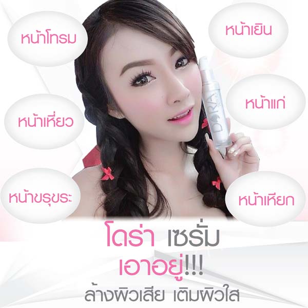โดร่า เซรั่ม ใช้แล้วผิวจะเนียน นุ่มขึ้น ขาวใสมีออร่า รูขุมขนกระชับฟิตเปรี๊ยะ ผิวแข็งแรงขึ้นไม่แพ้ง่าย ทาปุ๊บ ตึงปั๊บ หน้าใสเงา ดุจสาวเกาหลี ช่วยกระชับใบหน้า ไม่ให้หย่อนคล้อย หน้านุ่มๆๆ เด้งๆๆ ดึ๋งๆๆ ผิวอิ่มน้ำสุดๆ แต่งหน้าง่ายขึ้น เครื่องสำอางติดทนมากขึ้น แป้งไม่แตกเป็นคราบ แถมช่วยปกป้องผิวจากเคมีเครื่องสำอางค์