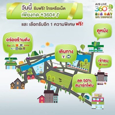 ใครใช้ ais วันนี้นี่เรียกว่าคุ้มสุดพัง ฟรีแถมทุกอย่างเดินออกจากบ้านตัวเปล่าได้เลย เอาๆ ใครยังไม่มีพิกัดก็จัดไปเลยนะ จะกิน จะเที่ยว ดูหนัง โทรฟรี เนตฟรีกด *360# โลดด ยาวไปๆๆ