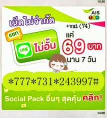 🌻🌻▪ แพ็ก 69 บาทเล่นเน็ตได้ไม่จำกัด (Social ) นาน 7วัน กด *777*731*243997# โทรออก