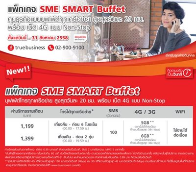 เห็นโปรนี้เลยเอามาแนะนำจ้า http://truebusiness.truecorp.co.th/content/cms/5310 เนื่องจากเป็นเซลล์ เราโทรเยอะมาก เลยต้องหาโปรคุ้มๆ ตลอดๆ เลยไปได้โปร SME SMART Buffet โทรทุกเครือข่ายฟรี เที่ยงคืน - 6 โมงเย็น ใช้ 4G ได้ 5GB Wifi ไม่จำกัด รายเดือน 1,199 บาท เหมาะกับการให้ออฟฟิศจ่ายเป็นอย่างมาก โปรนี้เราย้ายมาจากค่ายอื่นจ้า