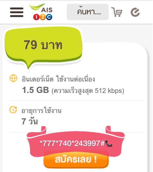 สมัครเน็ต 79 บาท เล่นเน็ตได้ไม่จำกัด ความเร็ว 512 Kbp 7 วัน ความเร็วสุงสุด 1.5 GB กดสมัคร *777*740*243997#โทรออก