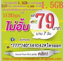 1. New!แรงกว่า!เร็วกว่า!เล่นได้เยอะกว่า! โปรเน็ตเอไอเอส 79 บาท/สัปดาห์ สมัครกด *777*740*341042#โทรออก รายละเอียดโปรเน็ต 79 บาท 7 วัน : โปรเน็ต AIS 79 บาท (รวมVat=84.53บาท) เล่นเน็ตได้ถึง 1.5GB ใช้ความเร็วสูงสุด 512kbps หลังจากใช้งานอินเตอร์เน็ตครบตามปริมาณที่กำหนด สามารถใช้งานอินเตอร์เน็ตต่อเนื่องที่ความเร็ว 64kbps