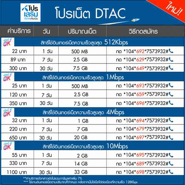 โปรเน็ตดีแทค 399 บาท รายเดือน กด *103*21*7333584#โทรออก รายละเอียดโปรเน็ตรายเดือน 399 : โปรเน็ตดีแทค 399 บาท (รวมภาษี7%=426.93บาท) ใช้งาน 30 วัน เล่นเน็ต 4G/3Gได้ถึง 3GB ใช้ความเร็วสูงสุด 42Mbps หลังจากเล่นเน็ตครบ 3GBแล้วสามารถเล่นเน็ตต่อเนื่องที่ความเร็ว 128kbps โปรเน็ตนี้ต่ออายุอัตโนมัติ
