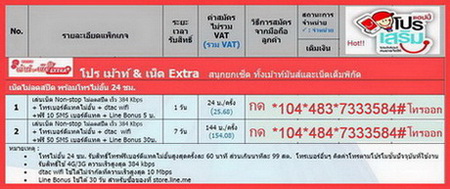 หมายเหตุ : โทรไม่อั้น 24 ชั่วโมง, รับสิทธิ์โทรฟรีเบอร์ดีแทคไม่อั้นสูงสุดครั้งละ 60 นาที ส่วนเกินนาทีละ 99สตางค์, โทรเบอร์อื่นๆ คิดค่าโทรตามโปรโมชั่นปัจจุบันที่ใช้งาน รับสิทธิ์ 4G/3G ความเร็วสูงสุด 384 kbps dtac wifi ใช้ได้ไม่จำกัดที่คามเร็วสุด 10Mbps Line Bonus ใช้ได้ 30 วัน สำหรับซื้อของที่ store.line.me